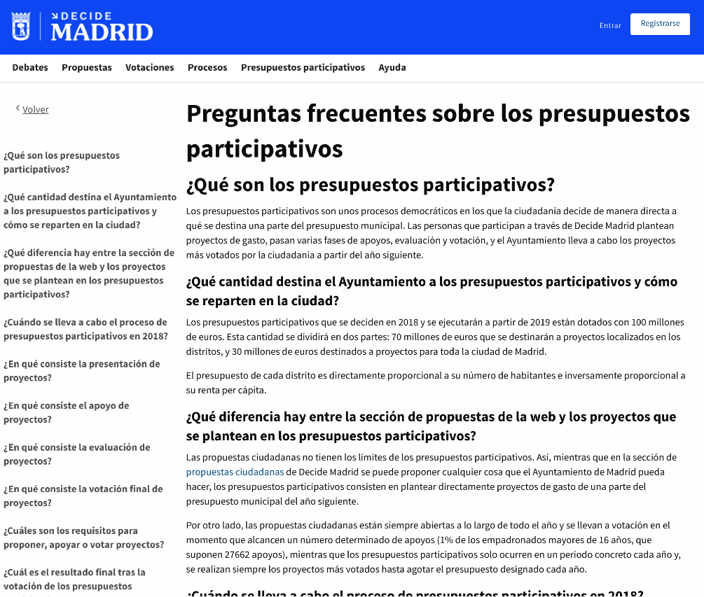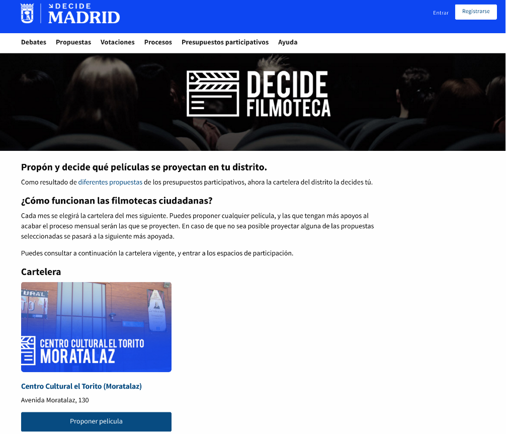 Y también la página de información con el detalle sobre otro proceso participativo:
